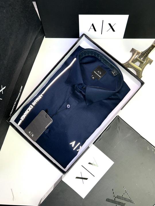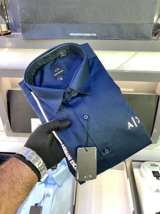 Home Shirts Arman_i Exchange Reflective Navy Premium Shirt With Brand Box Packing And Carry Bag F653-NY