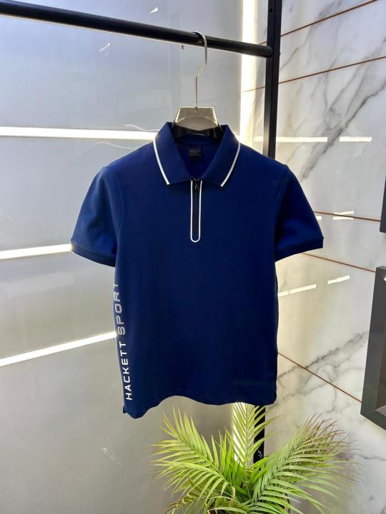 Home T-Shirts Aston Martin Hacket t Blue Polo Premium Collar Neck T-shirt F3502-BU