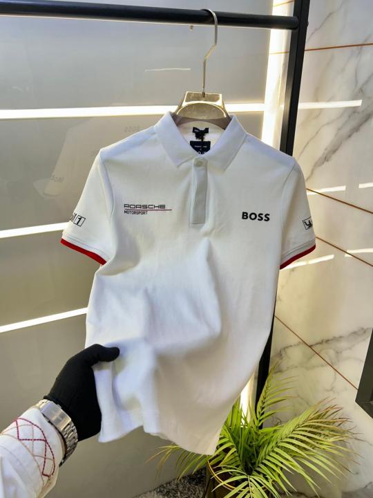Home T-Shirts Boss x Porsche Edition White Collar Neck Premium Polo T-shirt F3430-W2
