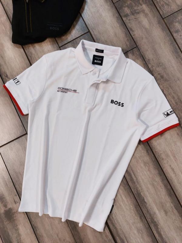 Boss x Porsche Edition White Collar Neck Premium Polo T-shirt F3430-W2