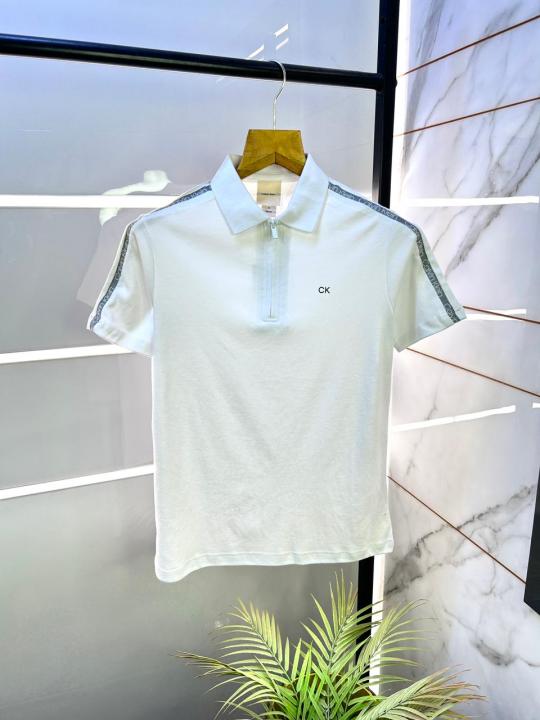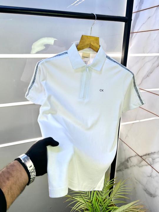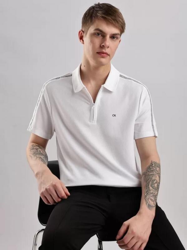 Calvin_Klein Polo White Zipper Collar Neck Premium T-shirt F3055-WH