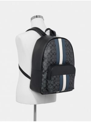 Coach_Houston_Backpack_69157_Black_Flower_Orchid_&_White_Stripe_Signature_Canvas_With_Dust_Cover_Carry_Bag