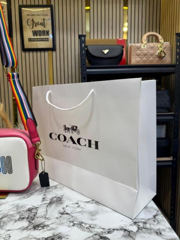 COAC_H RAINBOW SIGNATURE SLING WITH OG BOX AND DUST BAG INCLUDING CARRY BAG PREMIUM QUALITY (WHITE PINK) S2795