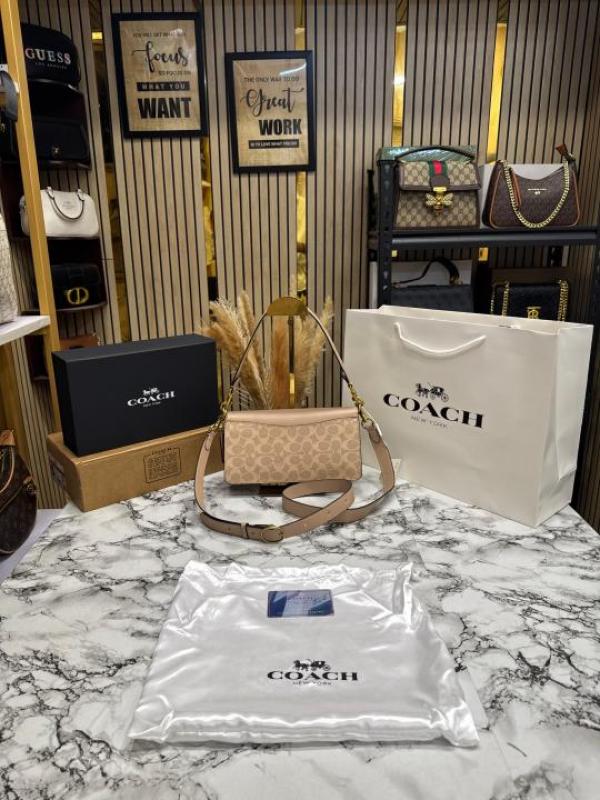 Coac_h Tabby Chain Clutch In Snake-embossed C Logo Shoulder Bag With Double Og Box And Dust Bag Includes Carry Bag (Khaki)