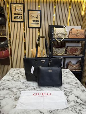 Guess Signature Shopper Tote Set With Matching Wristlet Pouch (Brown)