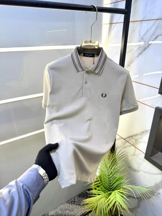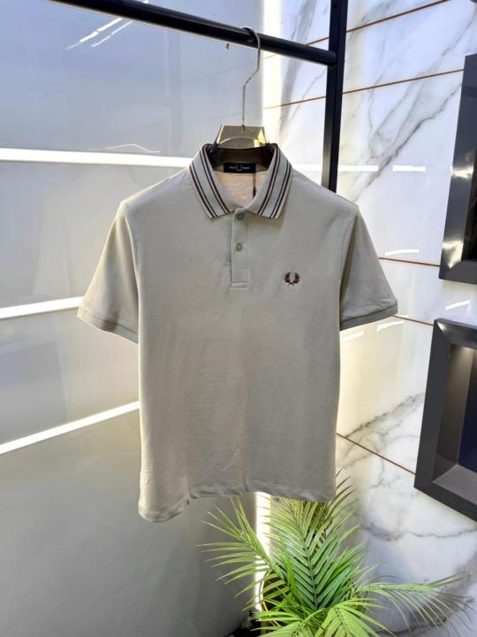 Home T-Shirts Fred Perry Beige Polo Premium Collar Neck T-shirt F2511-BE