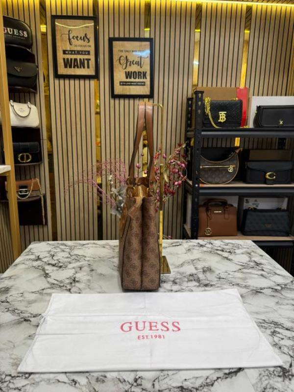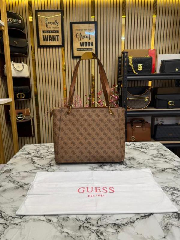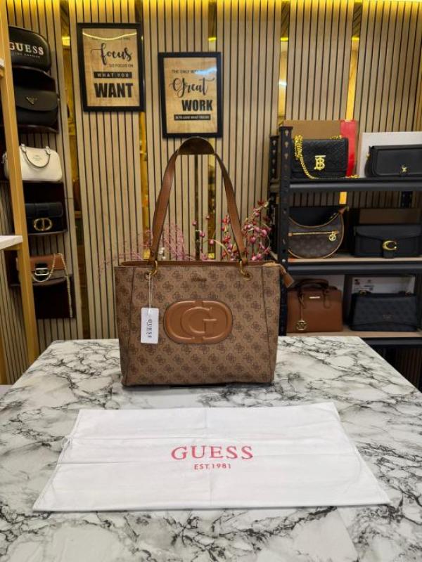 Guess Stone Eco Mietta Tote With Dust Bag (Brown)