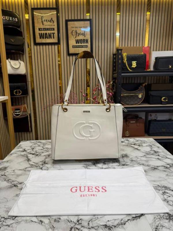 Guess Stone Eco Mietta Tote With Dust Bag (White)