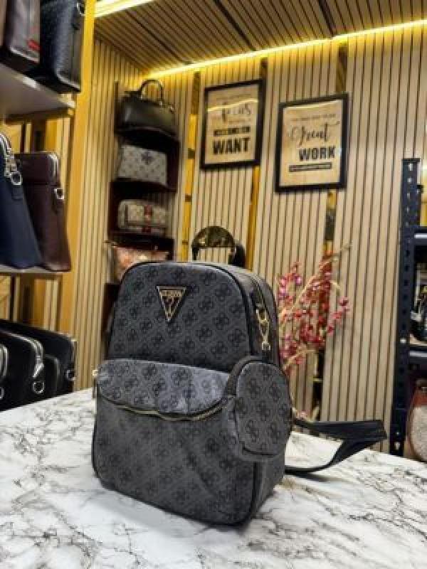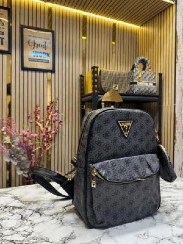 GUESS WOMENS BRAND LOGO BAGPACK WITH DUST BAG AND POUCH (BLACK)