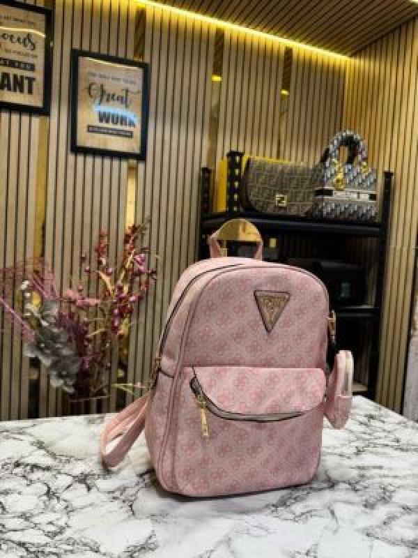 GUESS WOMENS BRAND LOGO BAGPACK WITH DUST BAG AND POUCH (LIGHT PINK)