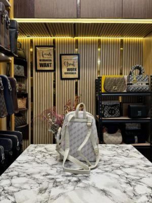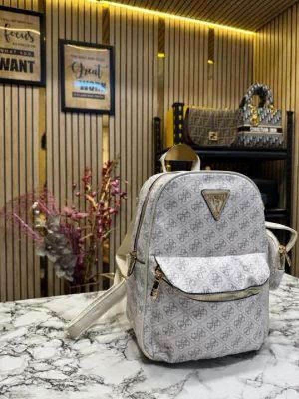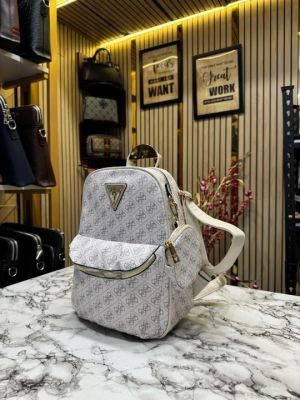 GUESS WOMENS BRAND LOGO BAGPACK WITH DUST BAG AND POUCH (WHITE)