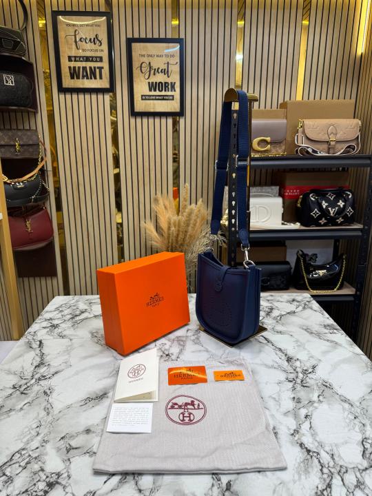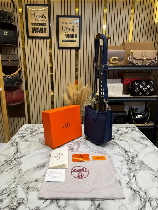 Hermes Evelyne TPM Clemence Leather Crossbody Bag With Box And Dust Bag (Blue-3306)