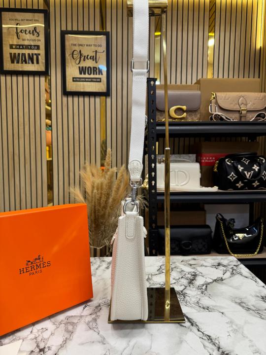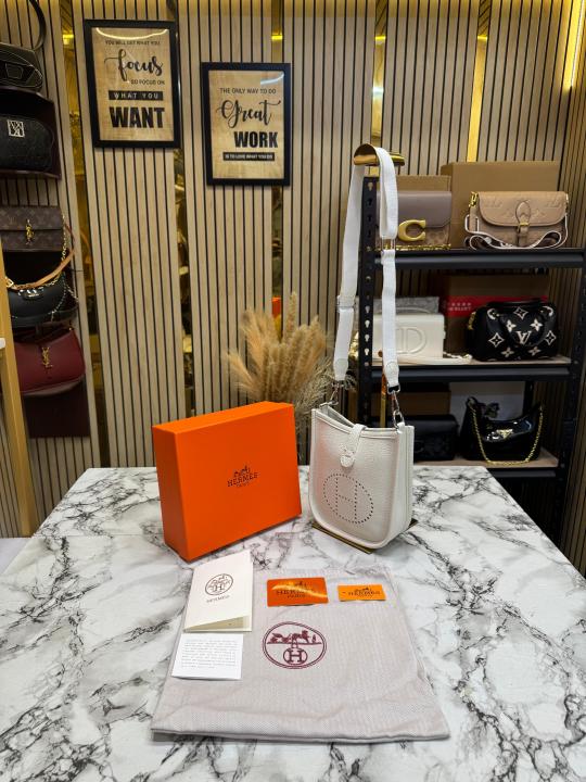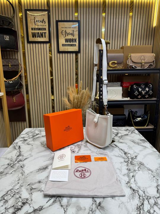 Hermes Evelyne TPM Clemence Leather Crossbody Bag With Box And Dust Bag (White-3306)