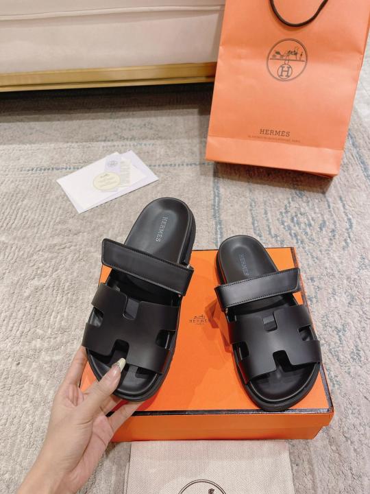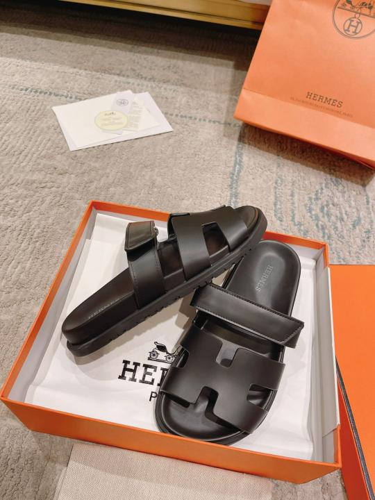 HERMES Calfskin Mens Chypre Sandals Black