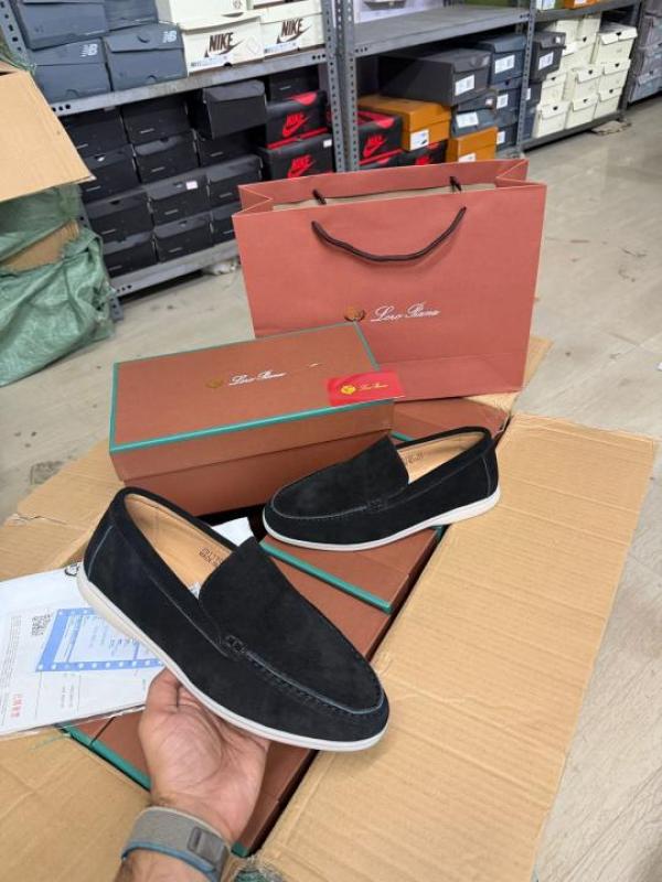 Loro piana summer walk pearl powder Black suede loafers