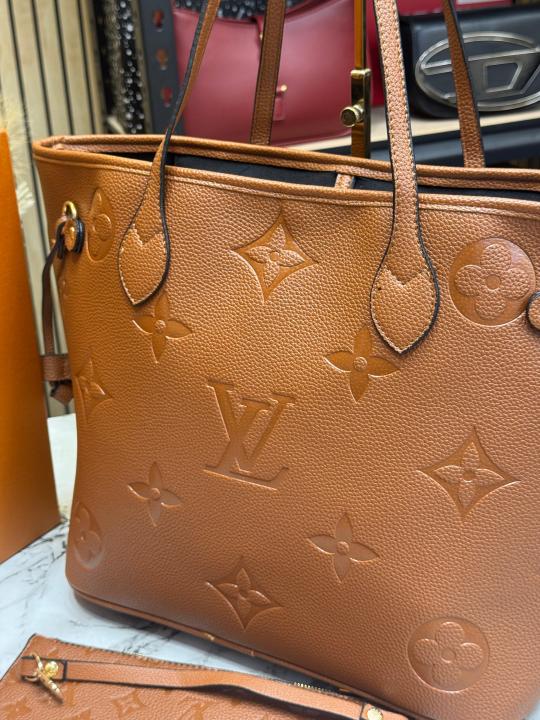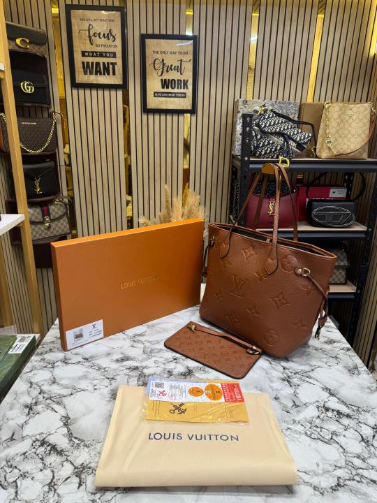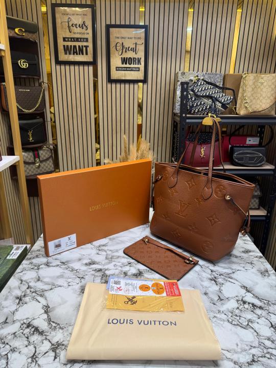 Loui_s Vuitton Neverfull Embossed Premium Quality Tote Bag With Box And Dust Bag (Brown)
