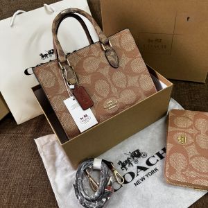 COAC.H MAGGIE BEIGE TOTE SIGNATURE CANVAS WITH EXTRA WALLET PREMIUM WITH OG BOX