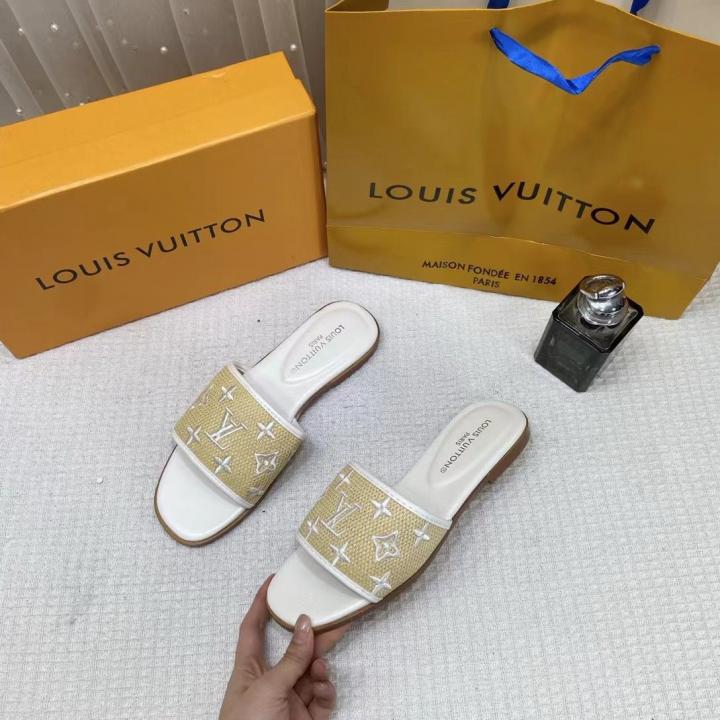 Louis_Vuitton_Monogram_Raffia_Slide_Sandals_Beige_&_White_With_OG_Box_&_Carry_Bag