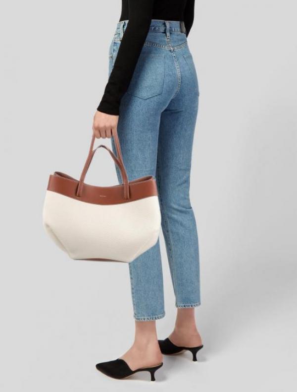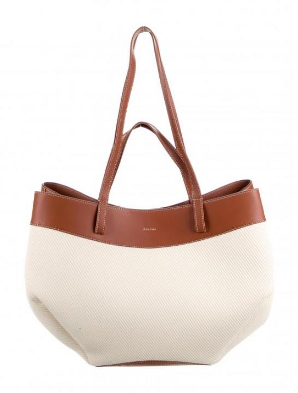 Polene Cyme Tisse Tote Bag Smooth Canvas Leather With Dust Bag (Red)