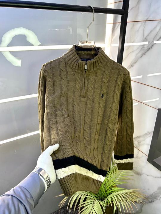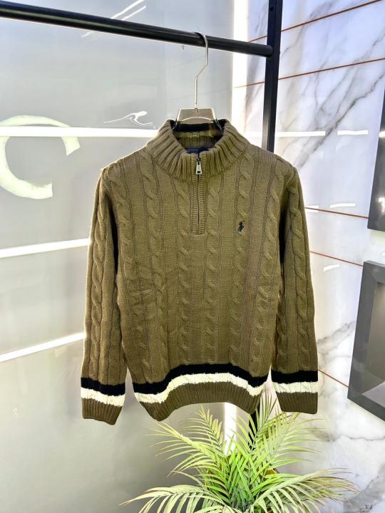 Home Premium sweatshirts Ralph_Lauren Light Brown Imported knitted Super Premium High Neck Pullovers F3264-LBR