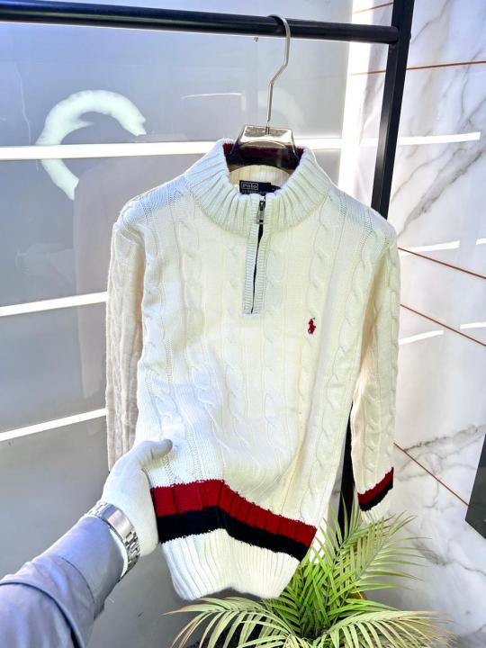 Home Premium sweatshirts Ralph_Lauren White Imported knitted Super Premium High Neck Pullovers F3264-WH