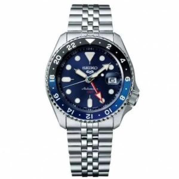 SEIKO GMT AUTOMATIC Black and blue silver chain belt
