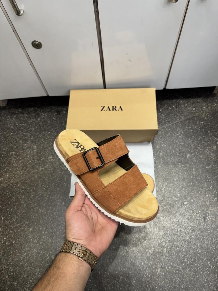 Zar.a Strap Suede Leather Premium Sandals Slides Brown
